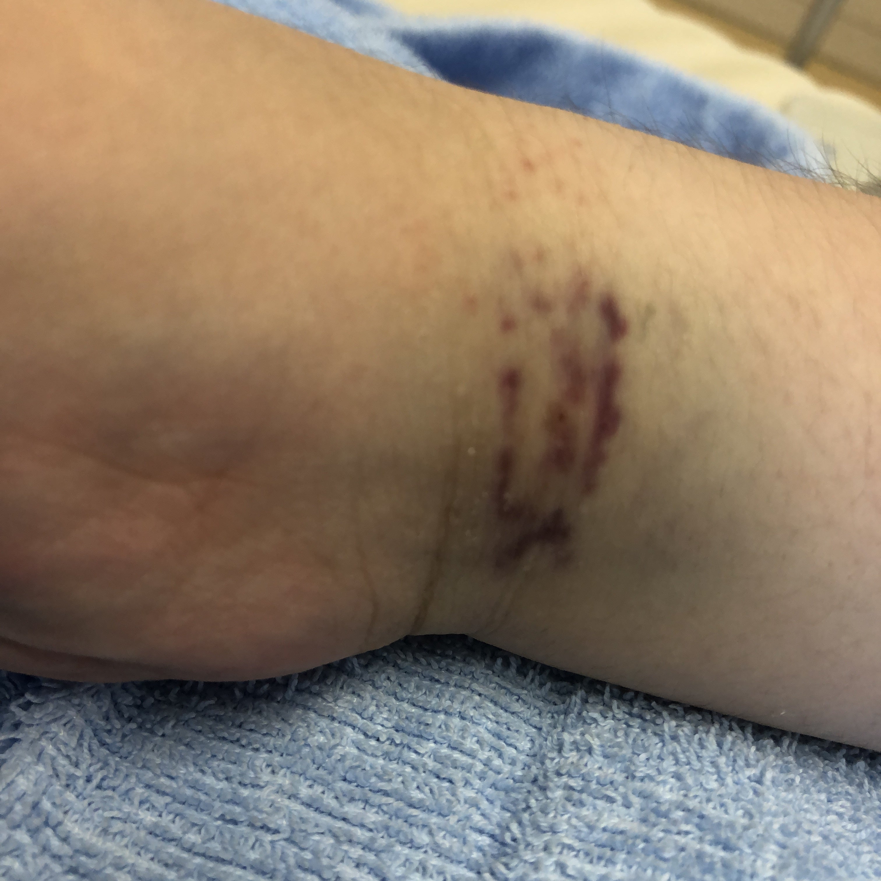 いくつもの点滴をさした場所