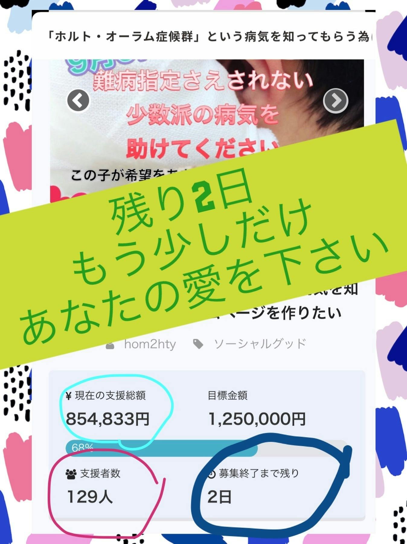 残り2日、もう少しだけご支援を宜しくお願い致します。