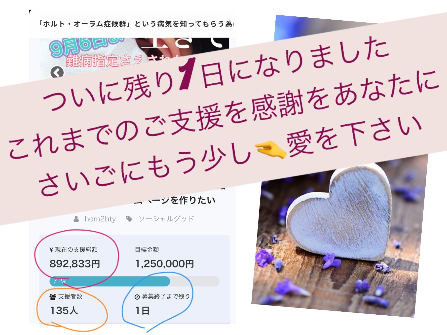 892,833円ものあたたかい愛を頂きました。