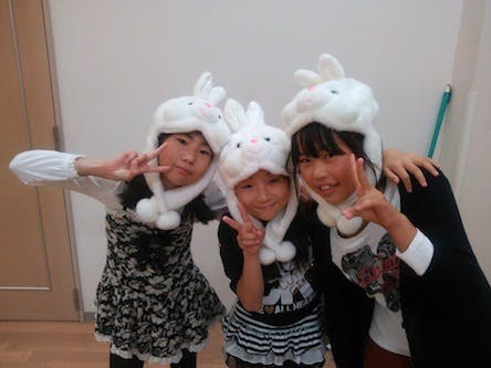 写真は小学生メンバー3人(左からあづみ、ゆう、はな)、来年くらいから「うさぴょんず体操」という曲のカバーをしようかと計画中?