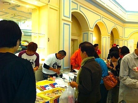 2012/10/18 02:4410月14日(日) いわきにて物産展のイベントに出展です。 女子美大の小野さん、新潟大の幅崎さん、福島大の石塚さんが駆けつけてくれました! お客さんは、試食のにおいに誘われ興味津々です もっと見る