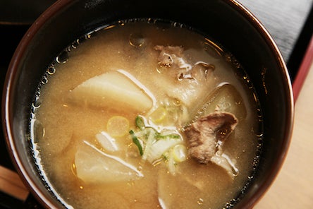 このお店の看板メニューが、「餃子」と実だくさんのめった汁!