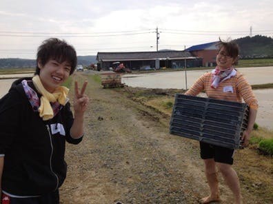能登奨学米生(学生)は、現地へ行って農業のお手伝い。