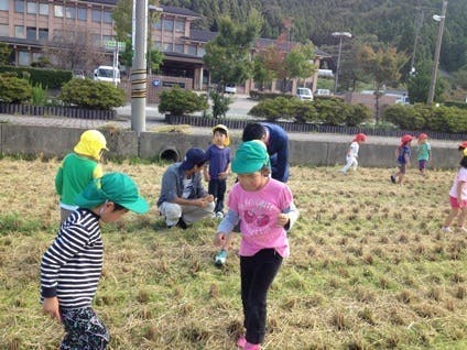 能登奨学米生がお手伝いに訪れる日は、地域は、ちょっとしたイベントになります。地元の子供たちと一緒に稲刈り。大学のない能登ですから、普段は若い人の姿を見ることは多くありません。子供たちもお兄ちゃん、お姉ちゃんと一緒に楽しい時間を過ごします。