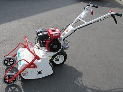 ハンマーナイフモアは管理機(小型耕運機)に似たような形をしているもので草を刈りながらその草を5cm単位に刻んでくれます。(芝刈り機みたいなもの)