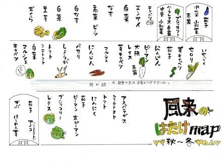 ※風来の畑で1年間ひと半うね分(1.5m×7m)で穫れる野菜を差し上げます。