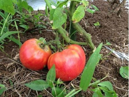 そんな中、草むしりをしていて草に隠れて無肥料、露地、完熟トマト発見。