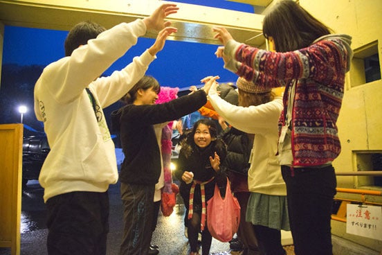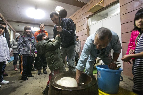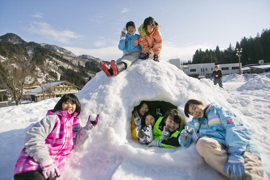 「石川は夏もいいけど、冬も真っ白な雪が積もって素敵なんだぞ」と、いわきの女の子たちに話しかけたことから冬の開催が決まりました。夏の反省を踏まえて期間は4泊5日に短縮、対象も大幅に広げて「ご家族みなさんでどうぞ」と呼びかけました。告知後あっと言う間に定員を越え、「この際だ、大型バスに乗れる人数だけ受け入れよう」と宣言してしまいました。経験豊かなスタッフには開催前から無謀な計画だとすぐにわかったようですが、力を合わせれば案外何でもできるもんですね。スタッフを含めて毎日70人ほどがてんやわんやの共同生活を繰り広げる、題して「ぬくもり村の大家族」キャンプとなりました。スタッフひとりひとりが、どうすることがぬくもりなんだろうと常に考えながら工夫を凝らす毎日でした。