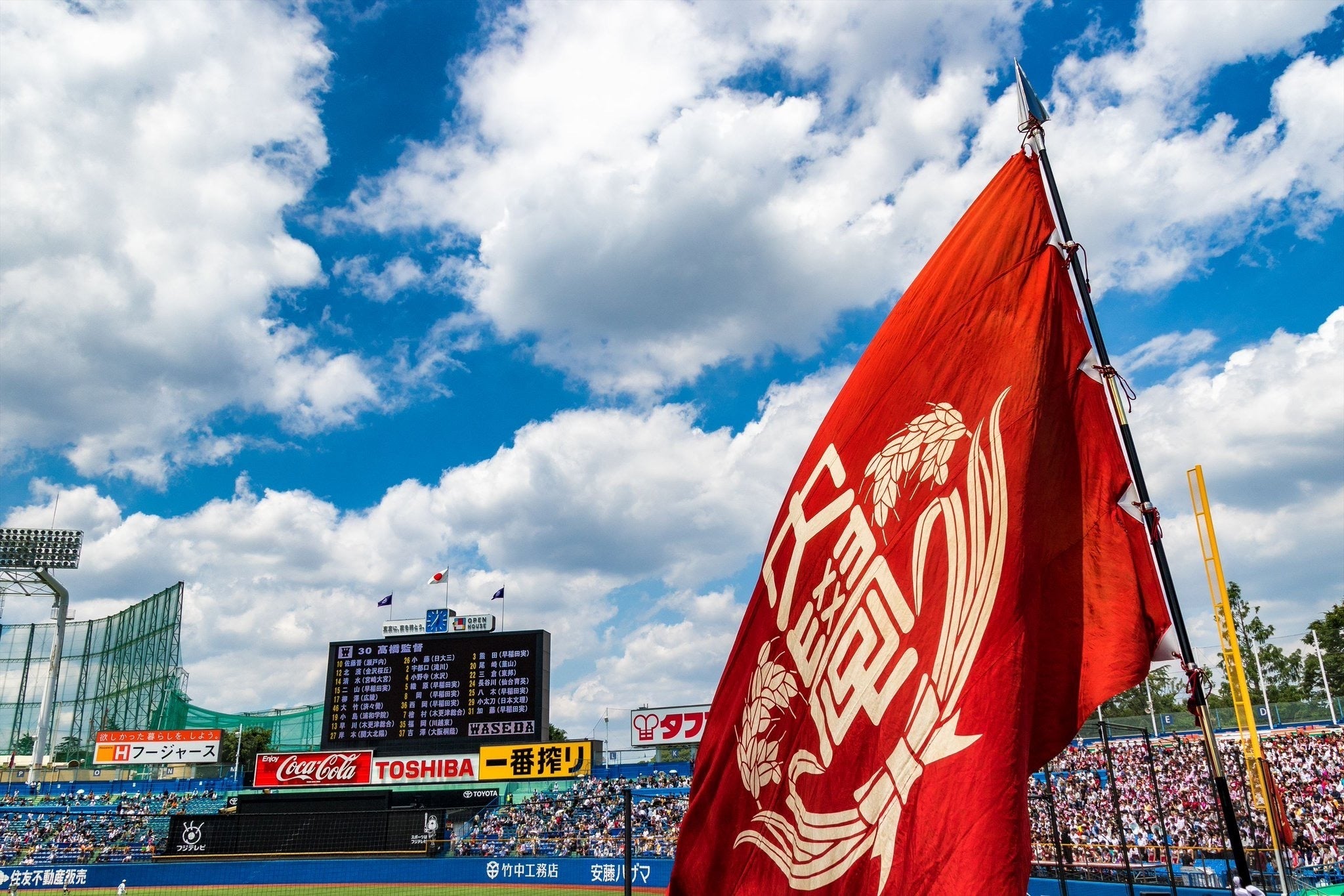 慶應に勝つという全員の想いが一つになり歌われた「紺碧の空」は球場全体の空気を変え、早稲田は大金星を挙げました。