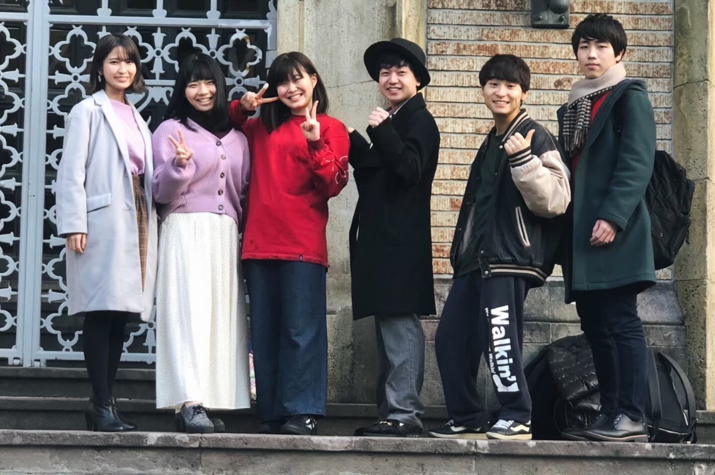 写真は冬に運営メンバーで大隈講堂前にて撮影したものです。現在は各自オンラインでの会議で活動を進めています。
