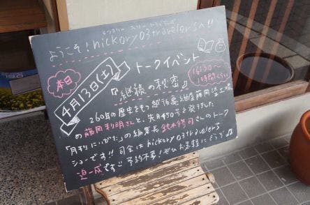4月13日(土)16:30〜、編集室から徒歩10分ほどのところにある上古町商店街にあるhickory03travelersさんへ。「継続の秘訣」というテーマで「月刊にいがた」編集長の鈴木修司さんと「越後亀紺屋藤岡染工場」の藤岡利明さんのトークイベントが開催されました。司会は迫一成さん(hickory03travelers)。