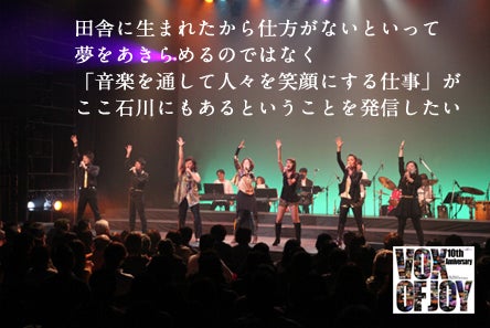 ▲私がまちづくりを行う七尾にて御祓川沿いのコンサートにも出演  私はVOX OF JOYのヴォーカリストの一人です。メンバーそれぞれが、パートに分かれて歌うことで「ハーモニー」が生まれます。一人ではなく、複数人で歌う醍醐味です。同じ音を出していてはハモりません。一人一人が違う色を持って、お互いを信じて、同じ方向を向いて歌うからこそ、ハモるのです。  これは、まちづくりも同じです。それぞれが役割を持っていて、きちんとその音を奏でた時に、すばらしく感動できる調和=ハーモニーが生まれます。一人だとあいまいだったことが、みんなで歌えば確かなハーモニーになる。そんな風に一人一人が輝いて、全体でも調和がとれたまちを育てていきたいと願って、まちづくりをやっています。そして、VOX OF JOYの活動も、まちづくりも、私にとってはどちらも大切な"私の役割"。だから、どちらも全力でがんばっています!CD発売は今年の8月8日を予定しています。