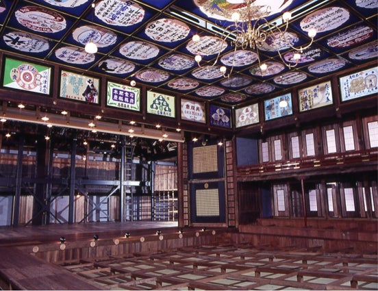 ▲半永久的に粟津演舞場内に宣伝絵を記載させて頂きます。詳しい位置などはお問い合わせ下さい。※写真は、再生復原された芝居小屋、八千代座(熊本県山鹿市)