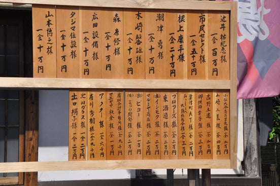 この支援者案内板は演舞場の修繕後も、会場内に半永久的に設置する予定です。