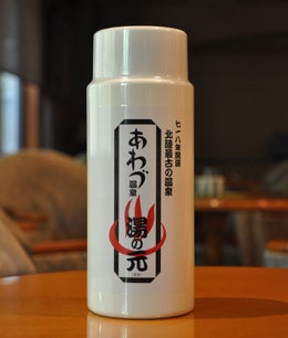 ▲粟津温泉の湯の素が入った小袋とボトルです。自宅で粟津温泉を感じて下さい!