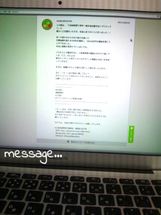 先日、リターン品についてのメッセージを送らせていただきました。