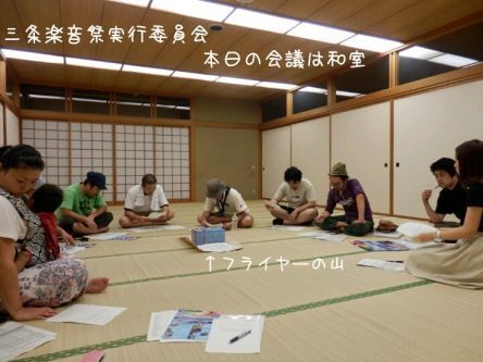 ポスター&フライヤーが完成し、みんなで配る段取りを話し合い中。