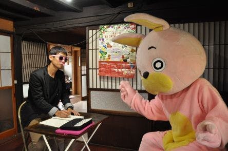 山形県朝日町の非公式PRキャラクター「桃色ウサヒ」の中の人・佐藤恒平さんに取材させていただきました。
