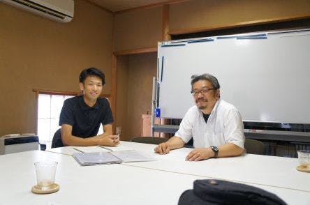 新潟取材の二人目。「特定非営利活動法人都岐沙羅パートナーズセンター」事務局長の斎藤主税さん(写真・右)を取材した時の写真です。
