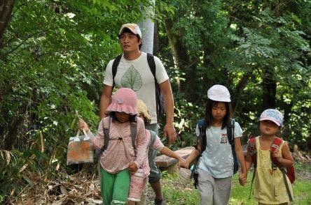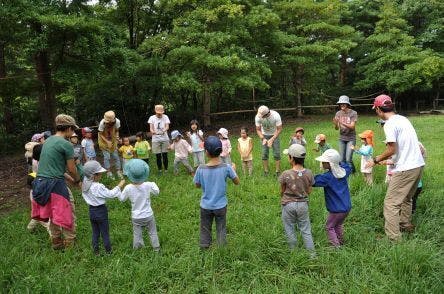 秋葉山という小さな山を使った幼稚園の取組です。子ども達は、一年を通して山の中で過ごします。移りゆく山々、風や気温の変化、動植物の気配を感じながら一日を過ごします。