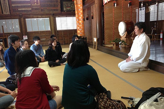 ▲祭では「お呼ばれ」といって知らない人にも地元の家からご馳走が振る舞われます 地域のコミュニティにとって、祭はただひたすらどんちゃん騒ぎするものではありません。 祭は本来、五穀豊穣や無病息災などを願う神事であり、また地域コミュニティのつながりを再確認する年に一度の大事な機会でもあります。 そんな祭に地域の外の人間が参加することによって、本来の祭の形が損なわれる危険もあります。 そういった中で祭スルツアーでは「本来の祭の形を壊さない」ツアー作りを非常に大切にしています。 そこで僕らが具体的に行っていることが2つあります。 ▲祭スルツアー第1弾での事前説明会の様子 まずツアー参加者に対して祭本番前に実施する「事前説明会」です。 この事前説明会では、参加する祭の基本的なマナー、伝統的な決まりなどを伝え、ツアー参加者が すぐに祭に溶け込めるような土台を作ることが目的です。 ▲祭スルツアー第1弾での青柏祭の神主さんである大森宮司に青柏祭の歴史を伺っています! そして、もう一つが祭本番以外での地域の方との交流です。 祭スルツアーでは祭本番以外のツアープログラムに、地域の方とツアー参加者の交流の機会を生み出すことをとても大切にしています。 地元の方と一緒にご飯を食べたり、祭の準備をしたりすることで、地元の方とツアー参加者の間に信頼関係を築くことが目的です。