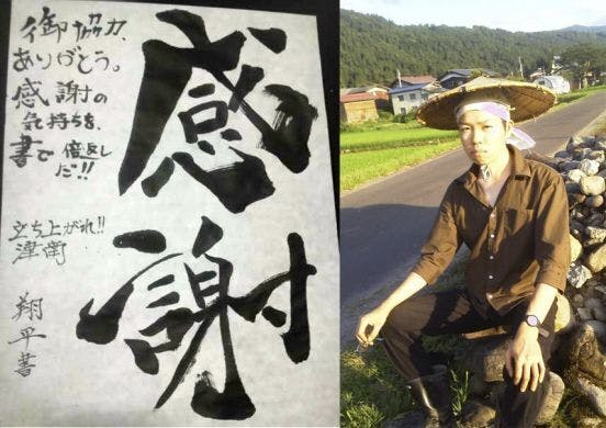 津南の若手書家・高橋翔平氏の笑える「ありがとうカード」