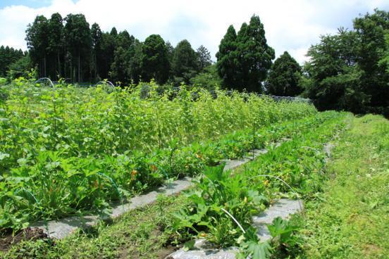 ▲氷見市の廣さんの畑で夏野菜を栽培している風景