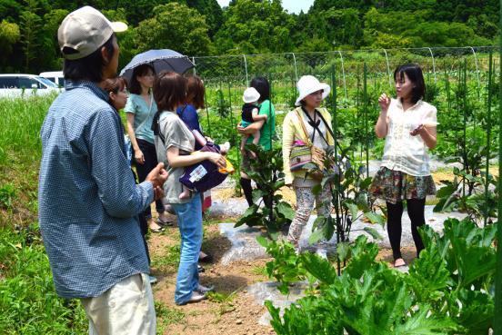 ▲地元の主婦たちを招き無農薬無肥料で育てる野菜の安全性を紹介しています