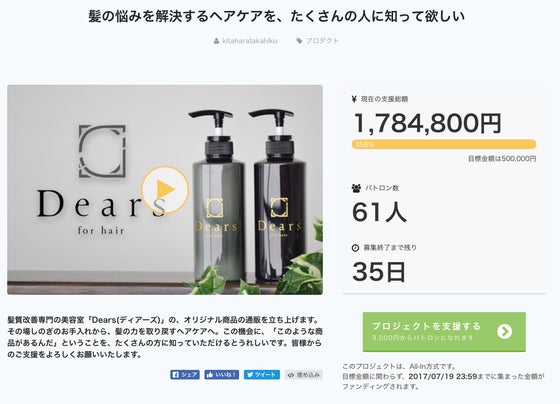 多大なるご支援に支えられ、2017年9月1日、Dearsの通販サイトがオープンいたしました。髪の悩みを根本から解決するヘアケアを、広く知っていただけるよう、通販を通して私たちの想いを発信して参ります。
