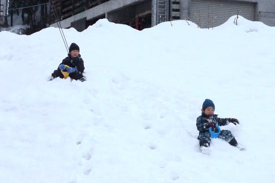 子どもたちは雪が降ったら家でゲームより、外で元気に雪遊びをしています。