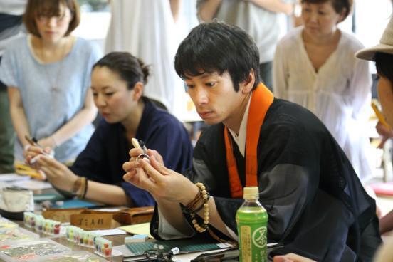 一昨年からは、消しゴムはんこ作家として有名な津久井智子さんと一緒に、消しゴムはんこと仏教をコラボさせた「諸行無常ズ」というユニットを結成し、全国各地のお寺を会場に消しゴムはんこ作りを楽しみながら仏教も体感出来るという世にも不思議なワークショップを開催しています。これまでに20カ所のお寺でワークショップを開催させていただきました。
