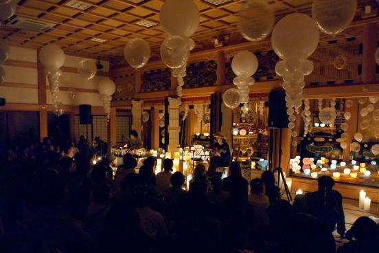 ▲本堂で開催されるキャンドル×バルーンナイトライブの会場はとても幻想的な雰囲気です。