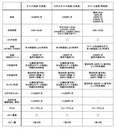 シェアスペースご利用にあたっての具体的な料金プランが出来上がってきましたので、ご報告させて頂きます!