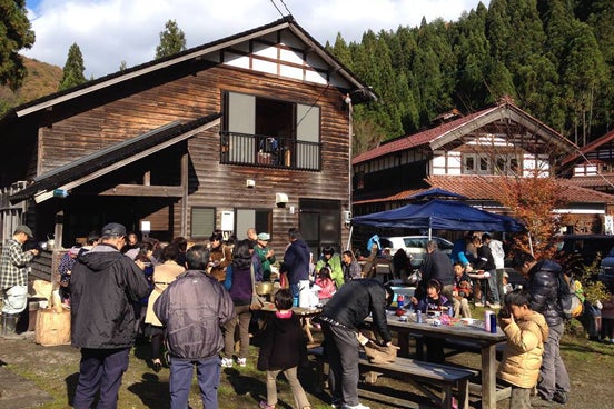 しかし住人がほとんどいない中、これを維持していくことは困難な状況です。百笑の郷ではこんな集落の耕作放棄地を開墾して、田んぼを復活させ、農作物の直売所と公園を作りました。今年は登山道を作ります。他にはイベントや合宿・研修の開催、地域の何でも屋さん、高齢者の健康教室やサロンなどをやっています。田んぼの復活は20年ぶりとのことで、景観が変わったと喜ばれています。直売所とたくさんのイベントをきっかけに、多くの人が来てくれるようになり、昨冬のイベントの際には地域の人が「こんなにたくさんの人はまち始まって以来!」と喜んでくれました。