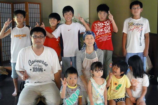 ▲生活体験合宿に来てくれた子どもたちと一緒に。