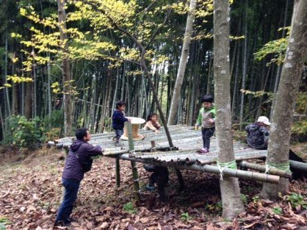 手作りの竹遊具がある"ひみつの森"では、どの子も夢中になって遊んでくれていました。