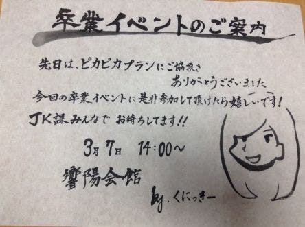 これまで、JK課活動に携わっていただいたみなさま、3月7日(土)14:00からのJK課卒業イベントに、ぜひご来場いただきますよう心よりお待ちいたしております。