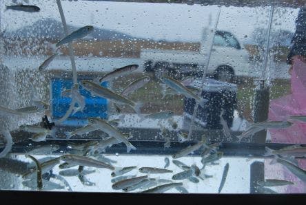 数匹を優しく川に放流します。3~5年ぐらいで帰ってくるそうです。