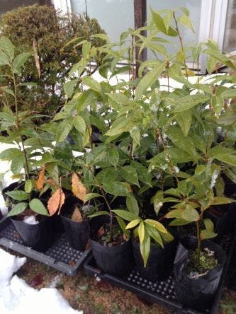 雪が積もる中ですが、育てているどんぐりの苗は力強く成長中です。