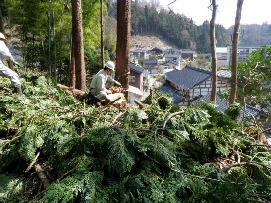 ▲能登ヒバを切り出す職人。”山を守る””能登ヒバを役に立ててほしい”、という熱い気持ちがこもっています。