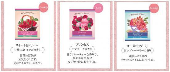 スイートドリーム、プリンセス、ローズヒップというタイトルの3種類で、生活の木を代表する銘柄をセットにしました。
