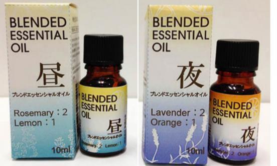 昼用アロマ:ローズマリーとレモンを2:1でブレンドしたアロマオイル。