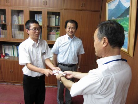 「吹奏楽フェスティバルがとても楽しかった。(支援金については)楽器はとても高価なので、大変ありがたい。部の目標として今年は北陸大会に出られるように頑張りたい」と意欲を見せてくださいました。