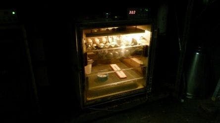西山動物園では、2002年3月26日からコサンケイの飼育を開始しています。今回4月3日から10日にかけて産卵のあった5卵を孵卵器に入れて様子を見ていました。