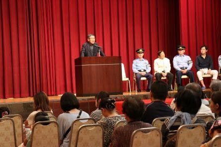「笑って笑って交通安全落語」では、上方落語協会の 桂福車(かつらふくしゃ)さんを講師に招き、「つないで安心、交通安全」と題した講演と落語を行いました。講演会では常識だと思っていることが、実は思い込みであったり、慣れた所、安心した時に油断がやってくると、身近な事柄を例に挙げ、楽しく交通安全を呼びかけました。