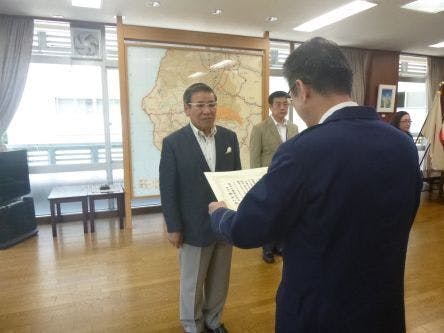 今月12日、鯖江市は交通死亡事故ゼロ6か月を達成し、21日、福井県警察本部長からの賛辞を鯖江警察署長よりいただきました。