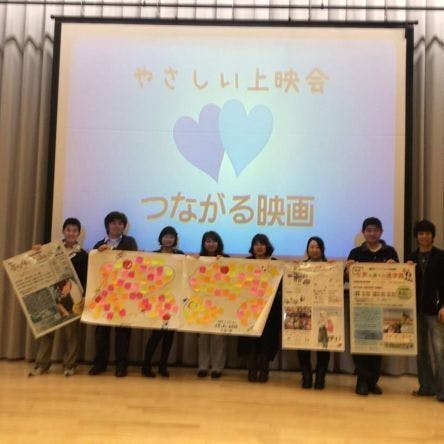 ▲「やさしい上映会」を支えてくれるボランティアの高校生や地域グループ。新たな連携がうまれます。