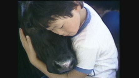 昭和62年、新潟県の山あいにある全校生徒9名の小さな小学校に3頭の子牛が入学しました。