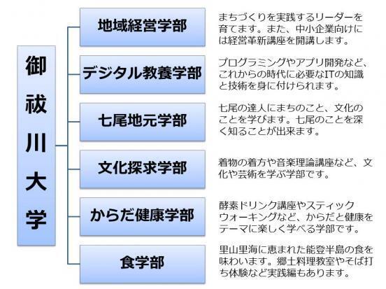 ▲御祓川大学を構成する6つの学部