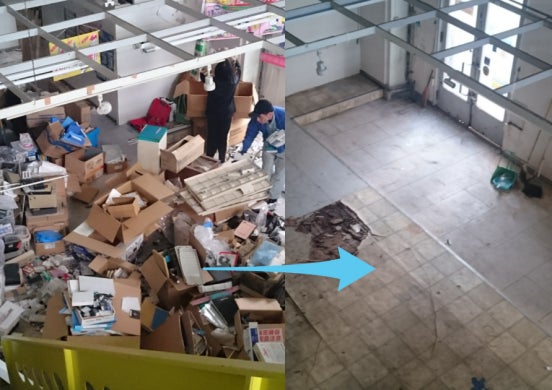 ▲建物内には廃材・不要品がたくさんありましたが、地域の方に手伝ってもらい、なんとか片付きました!